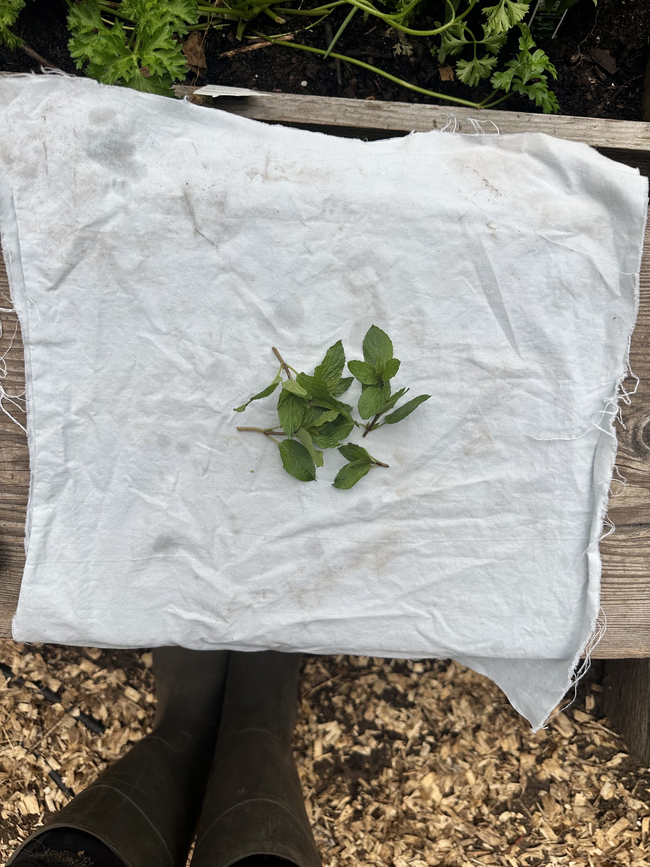 The last scoop of dried mint—from a friend’s garden last fall.