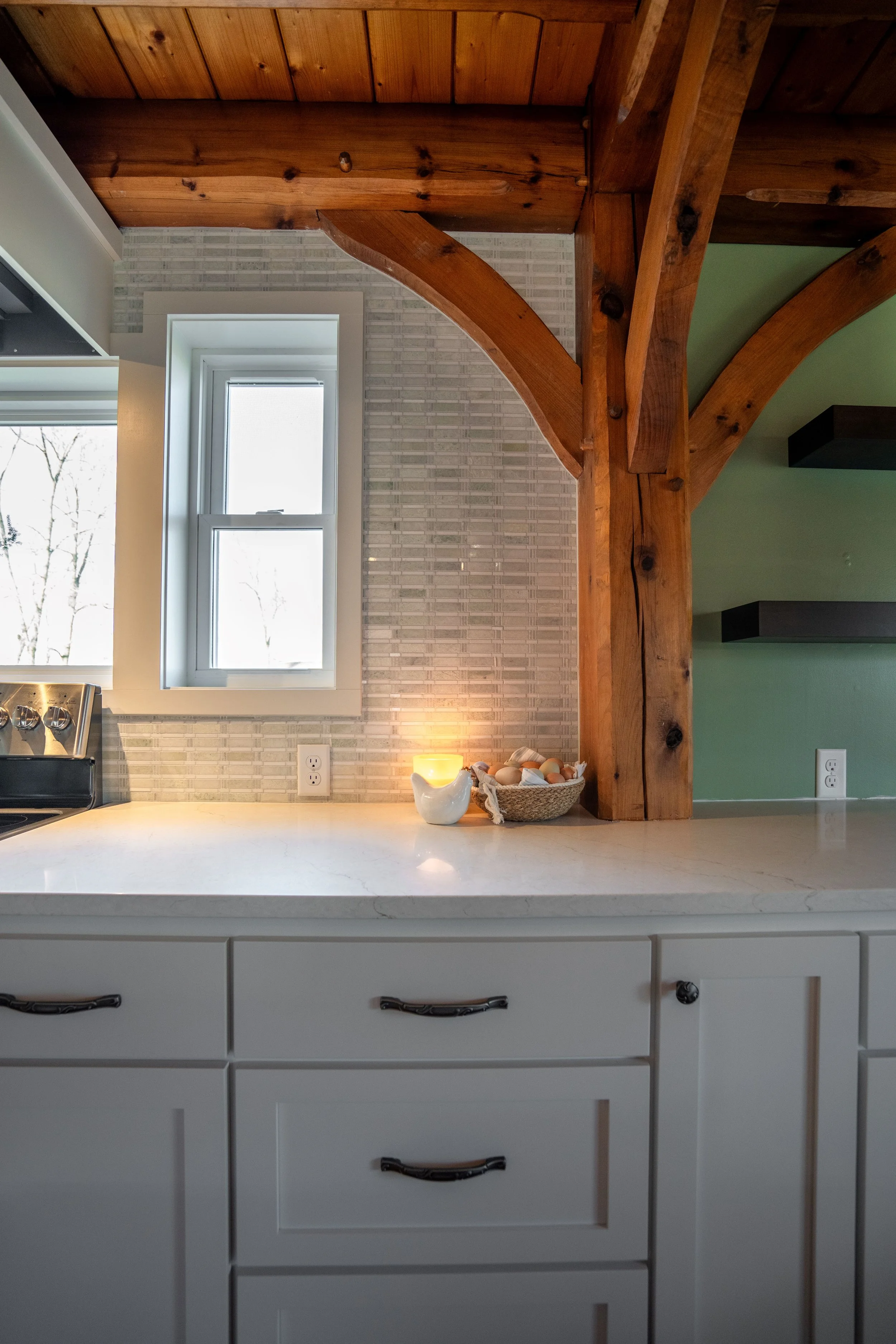 The kitchen cabinets were wonderfully done by our friends at Valler Woodworking. They seamlessly blend style with functionality.